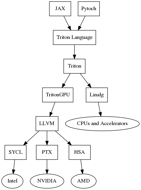 - 用户编写Triton kernel代码,通过Python API转换为Triton-dialect