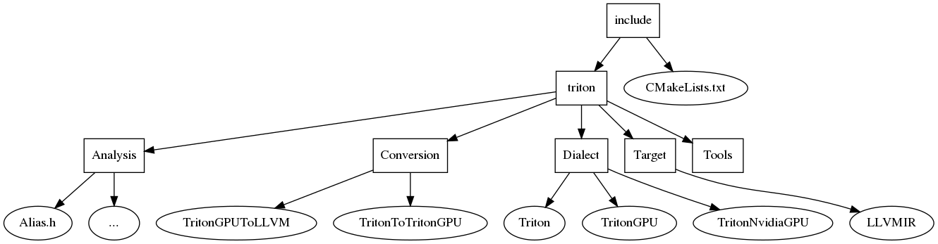 以 triton 目录为例,每一级中间表示目录下都包含以下两个文件夹: